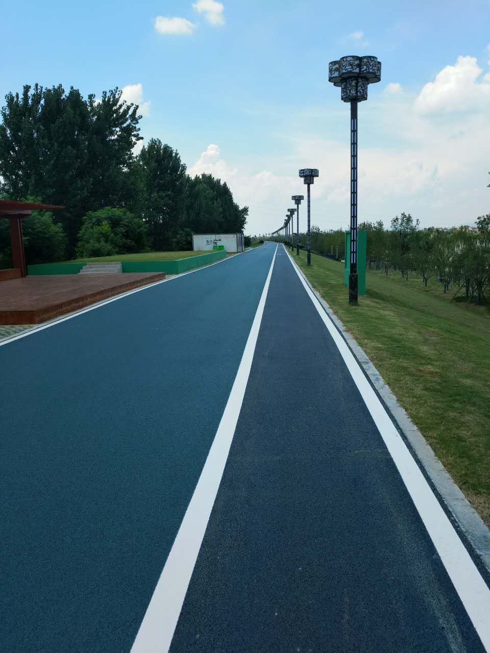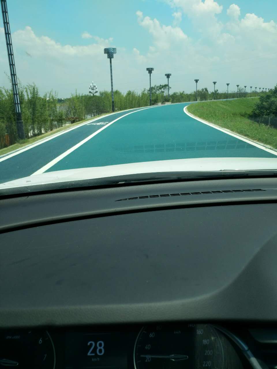 以下兩張圖片是修建好的用雙青顏料公司提供的彩色瀝青顏料制成的彩色公路,色彩鮮亮,效果非常好,客戶對(duì)于施工效果也非常滿意。